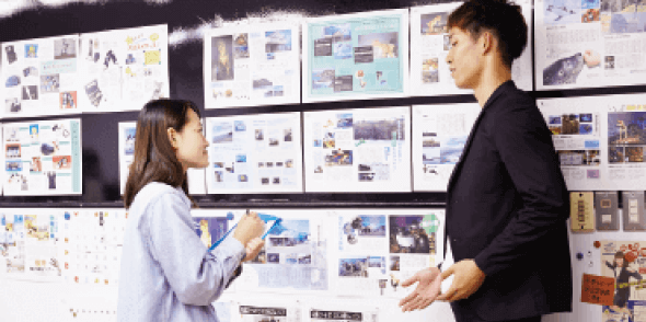 さまざまなメディアをまたいで繰り広げられる広告プロジェクトの中でも、実習授業を通して映像という切り口から広告制作の過程や各効果を理解し学んでいきます。