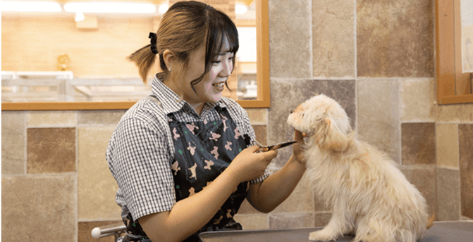 ペットのカットやシャンプー、爪切り、耳掃除などのお手入れをする仕事。サロンやショップ、動物病院などで働きます。