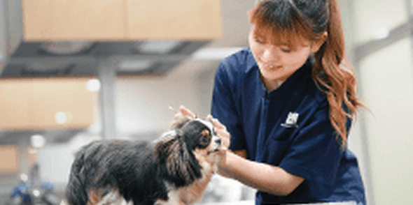 1年次は爪切りや耳そうじ、ブラッシング、シャンプーなど、お手入れ技術の基本を身につけます。