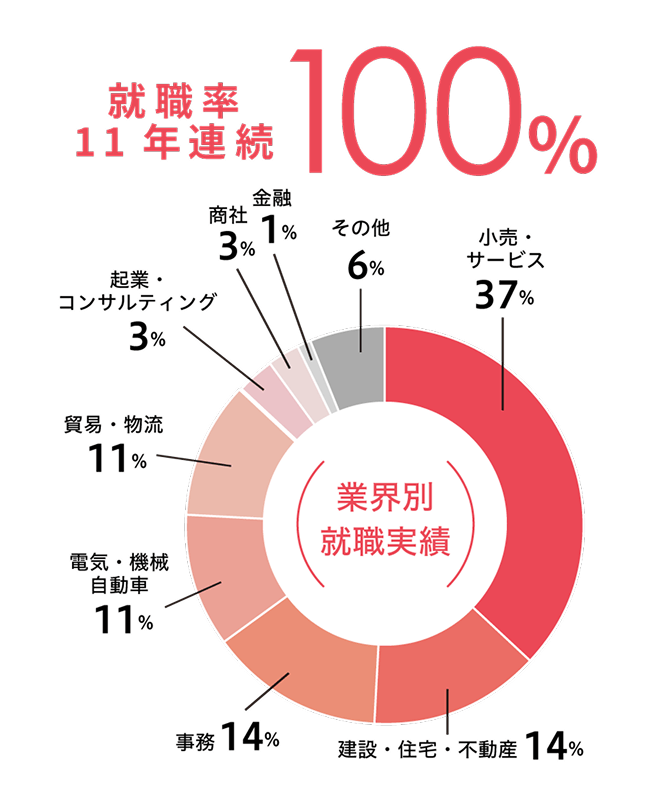 メーカー、金融、商社・流通、小売、ICTなど、卒業生の進路は幅広い分野にわたっています。