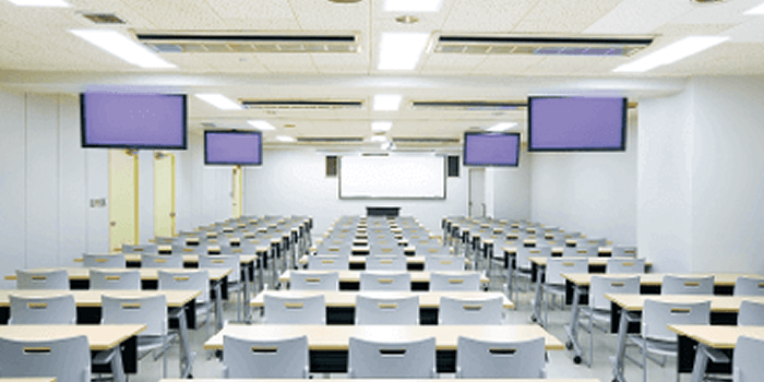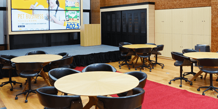 極大モニターを備えた大型スペース。教室として、プレゼンテーションルームとして、ホールとして、イベントステージとして多彩なシーンで学生たちの創造力をバックアップします。
