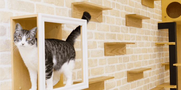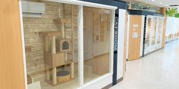 名古屋市動物愛護センターから引き取った保護猫が常駐。キャットウォークで2室を行き来できる猫たちにとって自由な空間。猫への学びがさらに深まります。