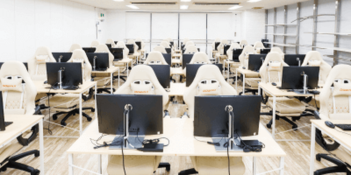 全席ゲーミングチェアのパソコン実習室!PC実習やビジネスプラン実習のリサーチ、就職指導等でフル活用しています!