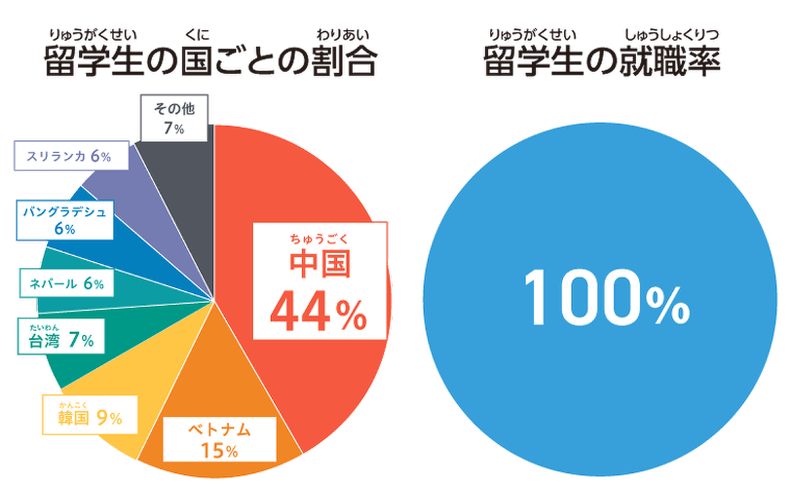 就職専門の先生が留学生の求人を紹介したり、就職活動に必要なマナーや履歴書の書き方・面接での受け答えをレクチャーしてくれるので安心してください。実際に、毎年多くの留学生が日本で内定をもらって、働いています。